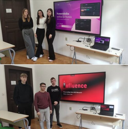 U kategoriji Razvoj softvera ostvareni su iznimni rezultati. Rad „Influence“, koji su predstavili učenici Fran Petričević (3.Q), Luka Damjanov (3.Q) i Luka Kovačević (4.Q), osvojio je prvo mjesto s osvojenih 99 bodova.